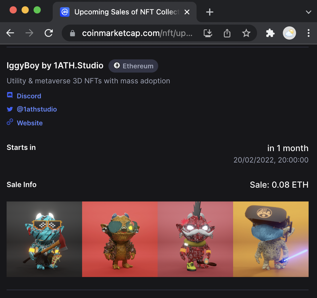 1ATH.Studio produces a collection of 10,000 3D IggyBoy NFTs that are truly one-of-a-kind. Each NFT is a unique piece of digital art manually created by 1ATH.Studio talented 3D designers. 1ATH.Studio will also issue 376 distinct animated NFTs that will be given away in promos, to influencers, and to promoters. 1ATH.Studio team doesn't use auto-generated NFTs tools which increases the value of the uniquely “hand-crafted” IggyBoy collectibles.